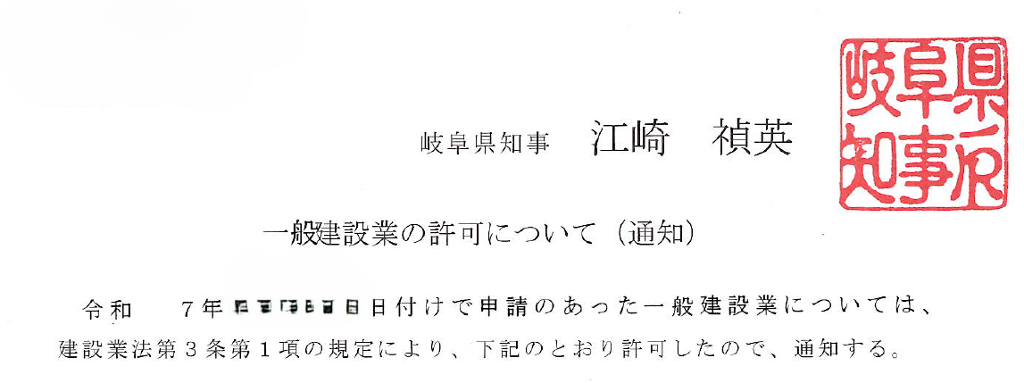 このたび、大垣市の企業様よりご依頼をいただき、**建設業許可(新規)**の申請を行っておりました案件について、無事に許可が下りました。先日、許可通知書一式をお渡しすることができ、当事務所としても大変うれしく思っております。